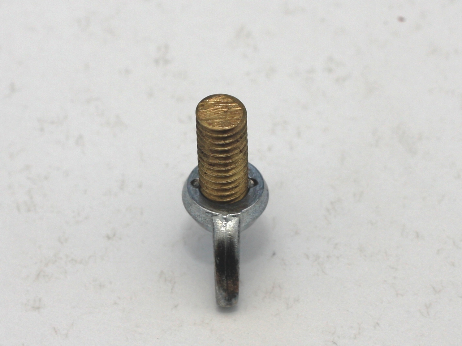 The threaded mount at the front of the binoculars is a 1/4 thread. A new thumbscrew was made using a 30mm length of thread was cut from a 1/4 inch brass screw and a 1/4 inch wingnut. To secure the wingnut to the threaded brass, the brass was threaded into the wingnut and a centre punch was used to punch the brass into the wingnut. A couple of 1/4 inch brass washers were also used.