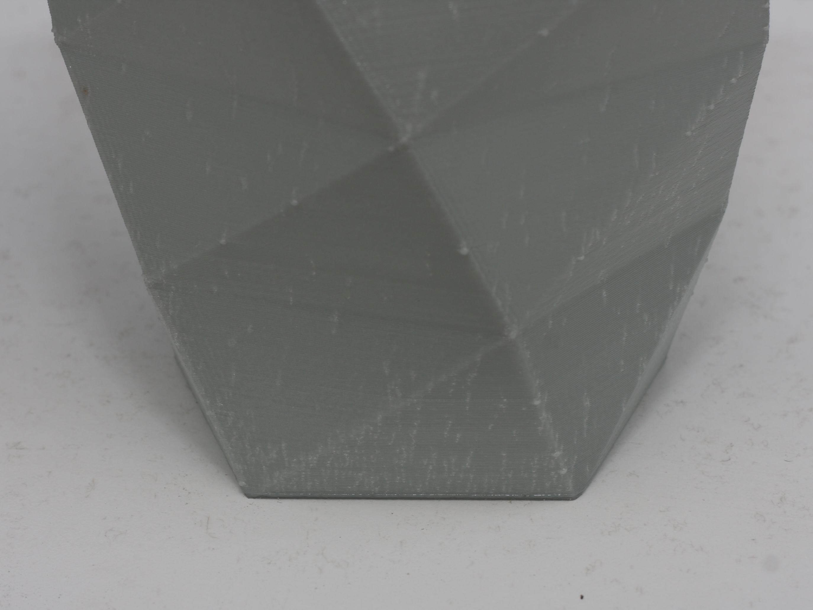 For my first attempt, I was disappointed with the surface finish. There were numerous defects throughout the whole print that looked like “veins”. Close observations whilst printing leads me to believe that they occur when a small air bubble develops during extrusion. This air bubble causes a small ridge on that layer and as each consecutive layer prints the new extruded plastic is disturbed.