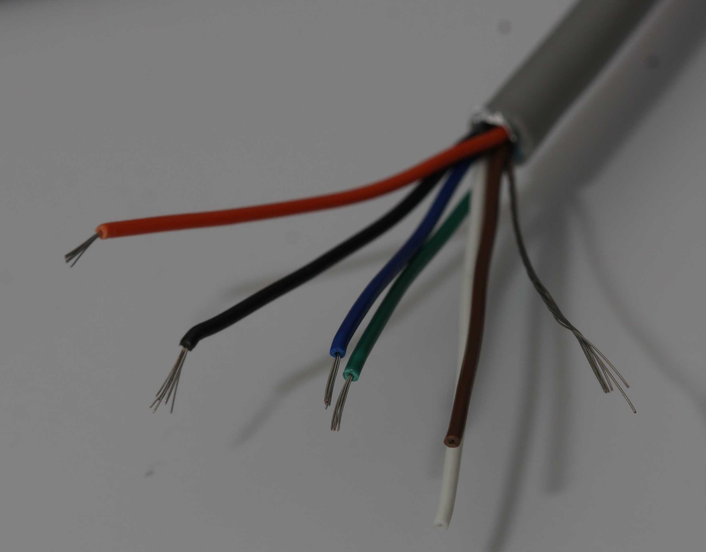 Computer cable wires stripped and shield removed